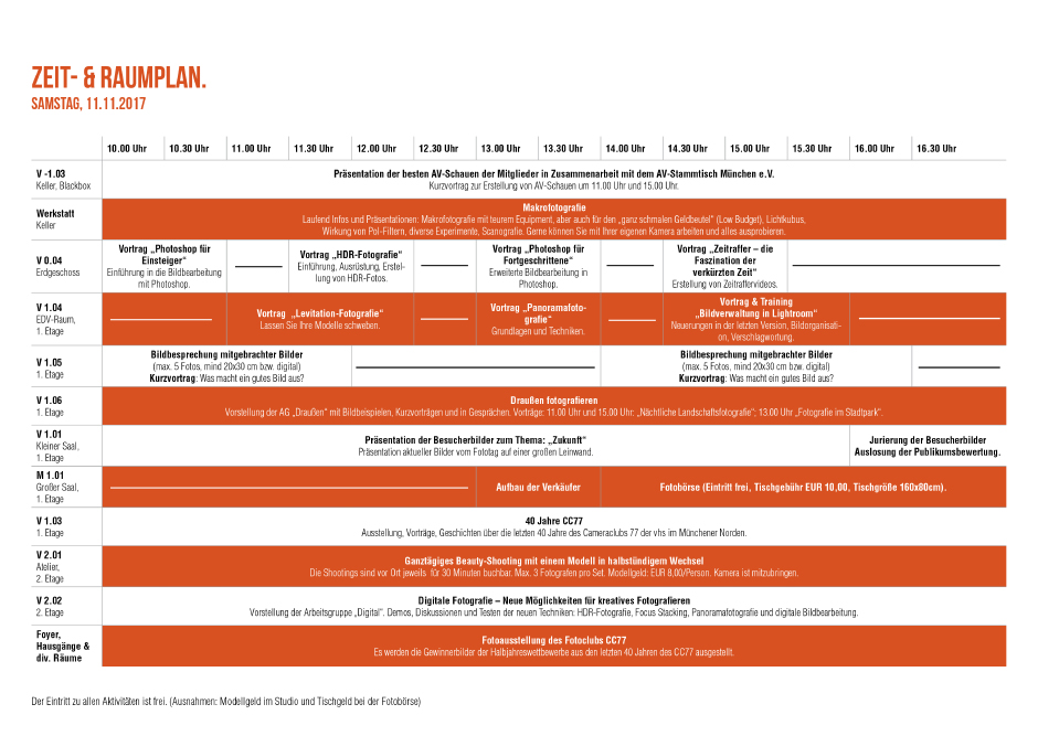 40 Jahre gibt es den CC77 schon. Und das wollen wir gemeinsam mit Ihnen feiern! Wie in jedem „Photokina“-freien Jahr findet an einem Samstag im November der Münchner Fototag statt. Die Mitglieder des Fotoclubs „CC77“ der VHS im Norden des Landkreises München lassen auch dieses Jahr ihrer Kreativität freien Lauf, um Ihnen einen umfangreichen Einblick in die vielfältigen Aktivitäten des Fotoclubs zu geben.